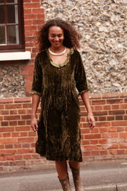 Silk Velvet Karen Dress in Olive Green