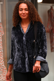 Silk Velvet Karen Shirt In French Grey