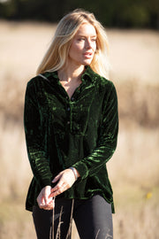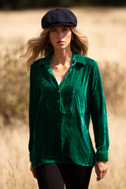 Silk Velvet Shirt In Emerald Green