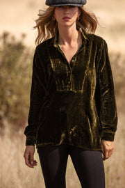 Silk Velvet Karen Shirt In Olive