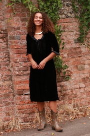 Silk Velvet Belle Tassel Dress in Black