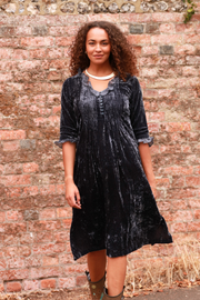 Silk Velvet Karen Dress in Black