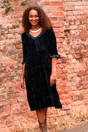 Silk Velvet Karen Dress in Navy
