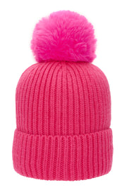 Super Soft Chunky Cashmere Hat with Pom Pom in Hot Pink