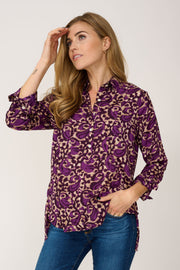 Super Soft Chunky Cashmere Hat with Pom Pom in Grey Leopard