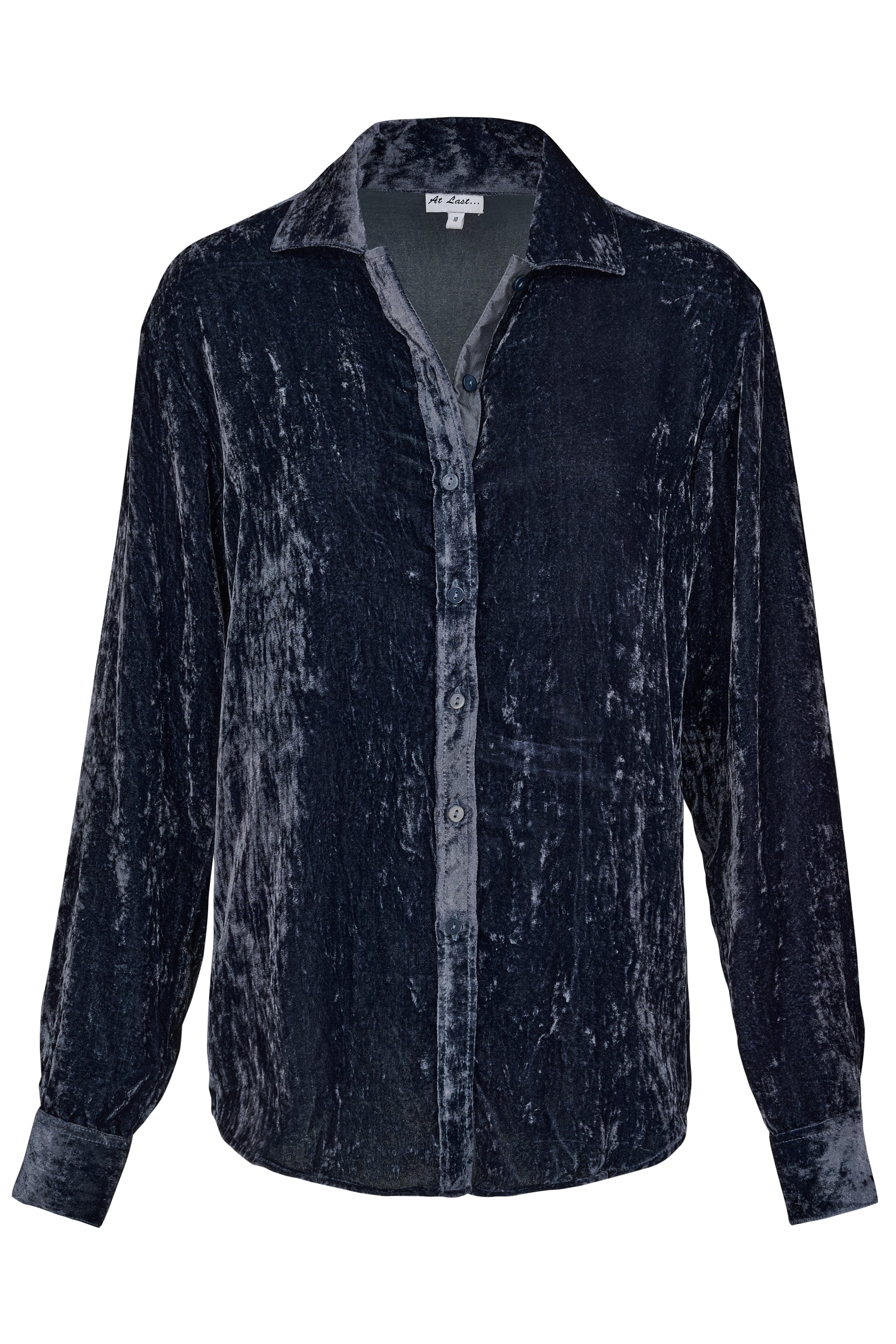 **COMING SOON - AVAILABLE TO PRE-ORDER** Silk Velvet Karen Shirt In Blue Boho Spot