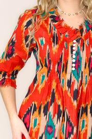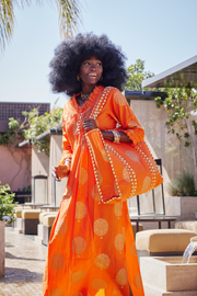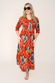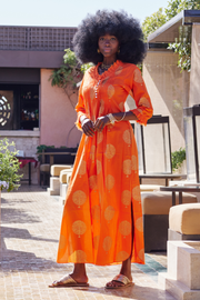 Cotton Annabel Maxi Dress in Tangerine & Gold
