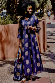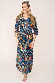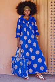 Cotton Annabel Maxi Dress in Marrakesh Blue & Gold