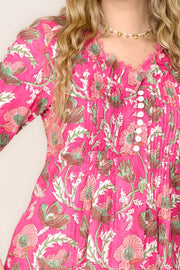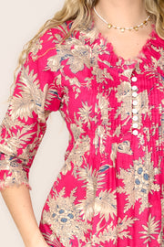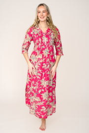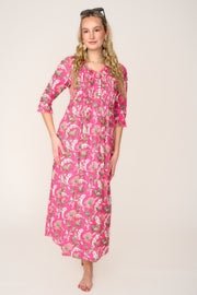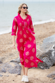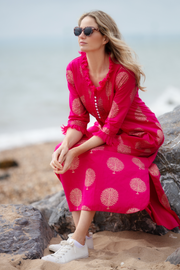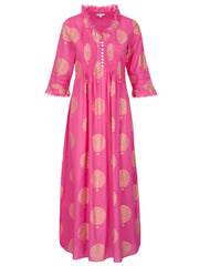 Cotton Annabel Maxi Dress in Fuschia & Gold