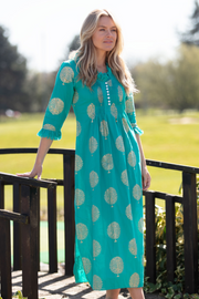 Cotton Annabel Maxi Dress in Peacock & Gold