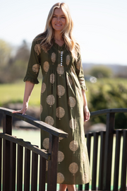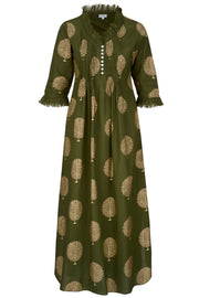 Cotton Annabel Maxi Dress in Olive & Gold