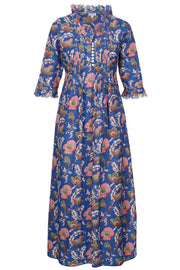 Cotton Annabel Maxi Dress in Royal Blue & Coral Flower