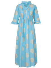 Cotton Annabel Maxi Dress in Baby Blue & Gold