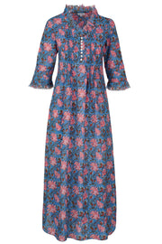 Cotton Annabel Maxi Dress in Wedgewood & Pink Flower