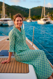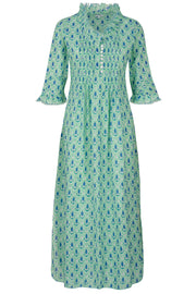 Cotton Annabel Maxi Dress in Green & Blue Vine