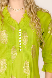 Cotton Annabel Maxi Dress in Lime & Gold
