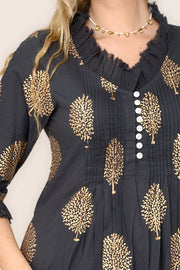 Cotton Annabel Maxi Dress in Charcoal Grey & Gold