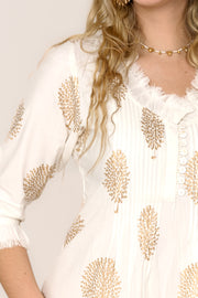 Cotton Annabel Maxi Dress in White & Gold