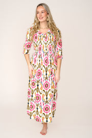 Cotton Annabel Maxi Dress in White Multi Ikat