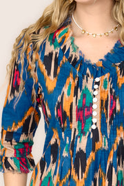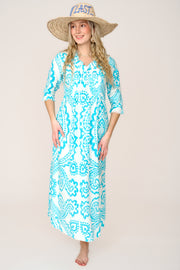 Cotton Annabel Maxi Dress in Turquoise & White Ikat
