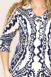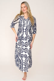 Cotton Annabel Maxi Dress in Navy & White Ikat