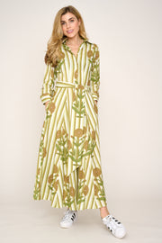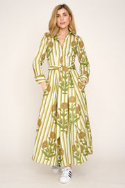 Cotton Lombock Midi Dress in Lime & Grey