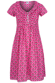 Cotton Karen Short Sleeve Day Dress in Pink & Green Moroccan