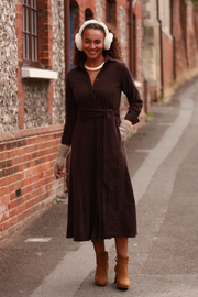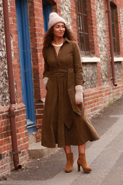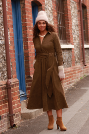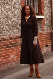 Marigold Corduroy Midi Dress In Chocolate