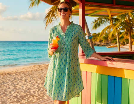 Annabel Cotton Tunic in Duck Egg Flower