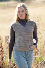 Cashmere Mix Sleeveless Jumper in Light Fawn with Olive