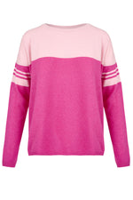 Cashmere Mix Sweater in Baby Pink & Cerise with Cerise Arm Rings