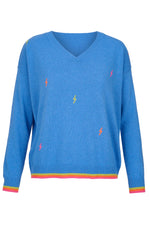 Cashmere Mix Sweater in Blue with Multi Lightning & Stripes