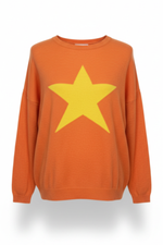 Cashmere Mix Sweater in Bright Orange with Bright Yellow Star