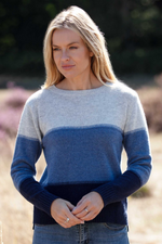 Cashmere Mix Sweater In Grey, Denim & Navy Stripe