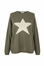 Cashmere Mix Sweater in Khaki with Lemon Star