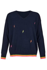 Cashmere Mix Sweater in Navy with Multi Lightning & Stripes