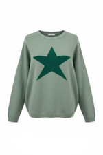 Cashmere Mix Sweater in Sea Green with Dark Green Star