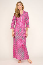 Cotton Annabel Maxi Dress in Pink & Green Moroccan