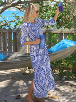 Cotton Annabel Maxi Dress in Blue & White Ikat