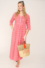 Cotton Annabel Maxi Dress in Coral & White Flower