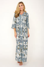 Our Annabel Maxi is a timeless best-selling dress! In beautiful new prints, patterns and colours each year! This dress is tailored to flatter all shapes, sizes and ages. The Annabel maxi is so easy to wear, looks very chic worn over a swimsuit or can be dressed up to wear out for dinner on a hot evening! Fun, light, comfy and flattering, this dress is the perfect summer staple! Featuring functioning buttons and super pretty frilled detailing on the neckline and cuffs.
