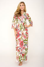 Our Annabel Maxi is a timeless best-selling dress! In beautiful new prints, patterns and colours each year! This dress is tailored to flatter all shapes, sizes and ages. The Annabel maxi is so easy to wear, looks very chic worn over a swimsuit or can be dressed up to wear out for dinner on a hot evening! Fun, light, comfy and flattering, this dress is the perfect summer staple! Featuring functioning buttons and super pretty frilled detailing on the neckline and cuffs.