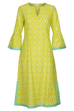 Cotton Belle Kaftan Dress in Lime & White Flower