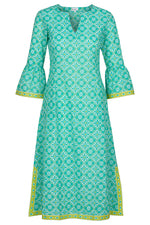 Cotton Belle Kaftan Dress in Turquoise & White Flower