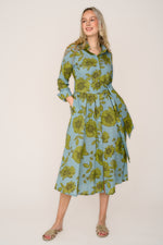Cotton Marigold Dress in Lime & Grey