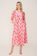Cotton Rhonda Midi Dress in Pink Pinstripe
