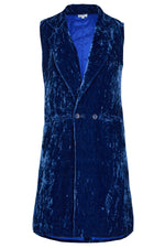 Long Silk Velvet Waistcoat In Sapphire Blue