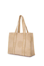 Medium Cotton Tote Bag In Latte & Gold