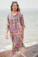 Cotton Annabel Maxi Dress in Grey Multi Ikat
