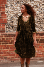 Silk Velvet Karen Dress in Olive Green